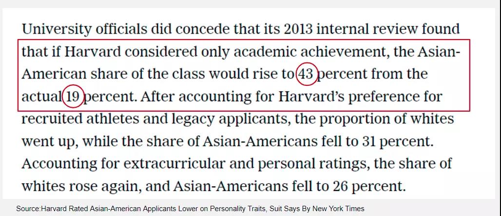 但在这如此高门槛的要求下,仍有近半数的亚裔申请者可以达到顶级名校-哈佛大学的学术招生标准,可见每年同期竞争者学术能力都相当优秀。