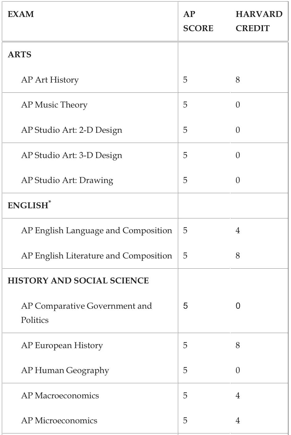 哈佛大学有一特殊要求:学生至少要有四门AP考试成绩且成绩必须为满分才可以换大学学分。