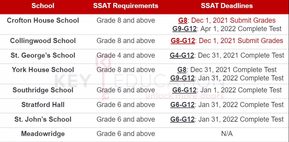 同时,不同的私校对于递交SSAT成绩的截止时间有各自的要求,有的学校的截止日指的是【完成考试的日期】,而有的则是【递交成绩的日期】 一般距离完成考试与收到成绩会有两周左右的间隔,需要家长们额外留意。为此我们特别整理了私校SSAT截止日的最新讯息,家长们要抓紧接下来的时间进行准备。