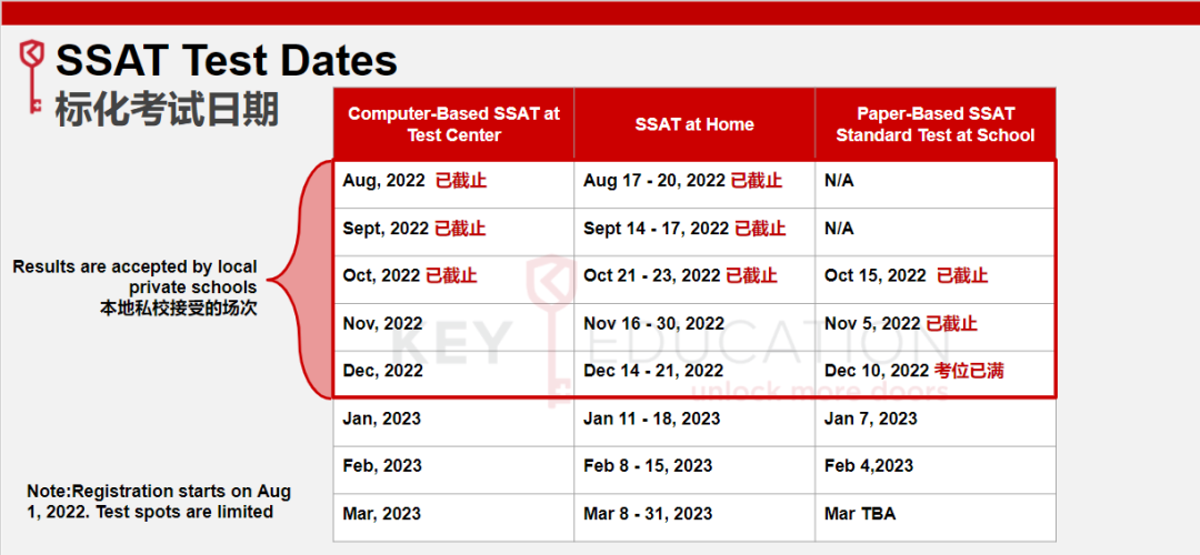 根据最新数据可以看出,由于申请人数的增加,今年SSAT考位十分紧张,12月纸质考试的场次均已报满,只剩下考试中心机考与在家考试两个选项。无论孩子是还未参加过考试,亦或是想让孩子在私校截止日前取得更好的成绩,都应该抓紧时间注册了。