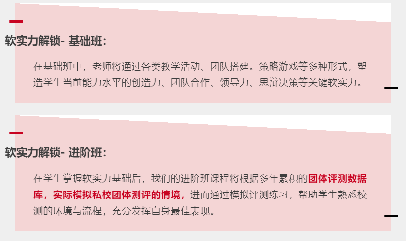 KEY独特的软实力解锁课程将帮助每位学生掌握私校所看重的关键软实力。进而通过实境模拟,切身体验私校测评的流程与形式