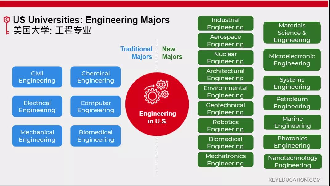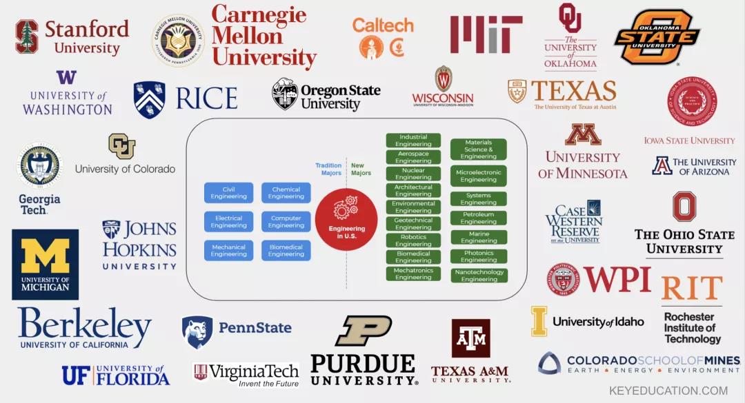 由于上述含括大量信息,在本次文章中KEY特别就“专业选择”给大家做回顾。假设一位学生以后想学习工程类专业,我们在考虑选择加拿大或者美国大学的时候就要多方面了解相关信息。