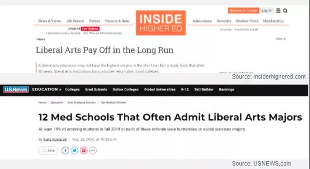 由于美国本科大学没有医学专业,学生需要完成四年本科学习后能申请进入医学院。很多学生会选择挑战名校的生命科学专业,想着从名校毕业再去申请医学院也许会比较容易。但这也是大多数学生所选的道路,因此也特别的竞争造就了名校极低的录取率。而很多学生和家长不知道的是,美国有不少著名医学院反而会倾向于招收更多从文理学院毕业的学生,因为他们更看好学生在文理学院所积累的综合素质。