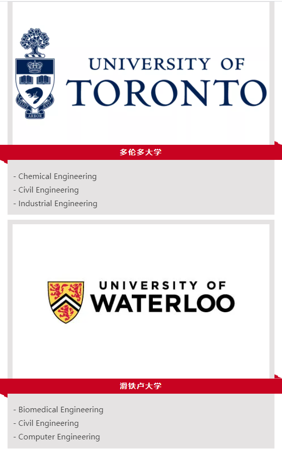 加拿大由于学校数量比较少,以下整理了工程专业较突出的院校: