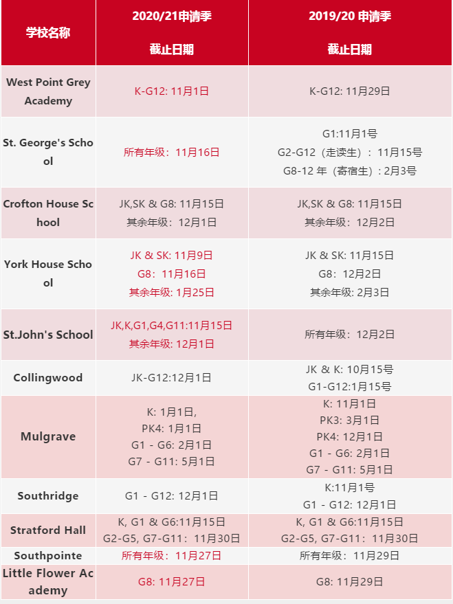 申请材料的准备需要时间,因此家长们也要特别留意申请的截止日期。为此,KEY特意准备了过去两年的私校申请截止日期的对照表供各位家长参考,帮助您更好把握关键的时间节点。