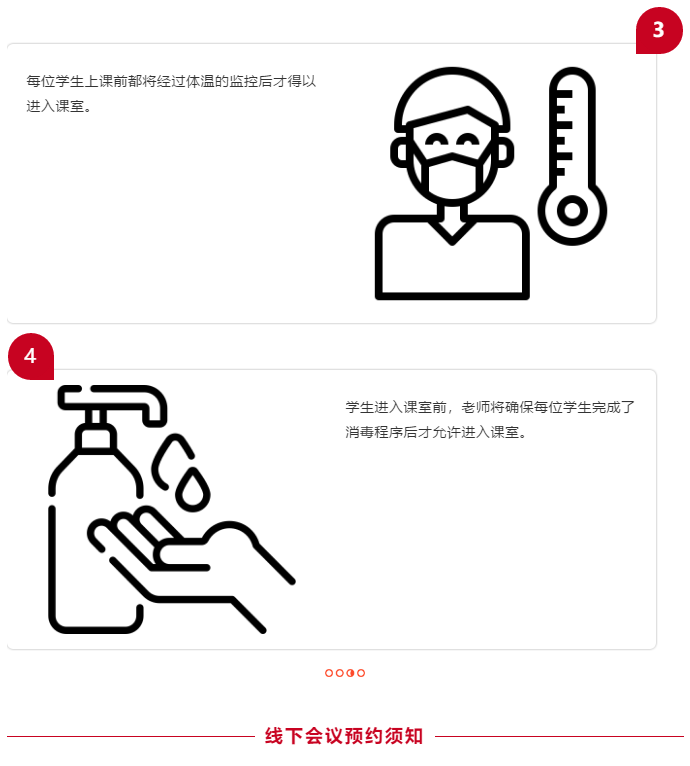 除此之外对于需要进行线下私校申请培训的家长们,以及曾经在网路上参加KEY宣讲会想进一步参观我们校园的家长们,我们听见您的心声了,KEY将于7月6日起开放线下的会议预约,而为了确保您以及KEY员工的健康,需要在您拜访我们前遵循以下几点事项: