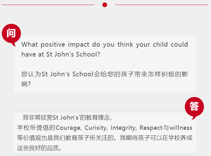 在您准备提问的时候,需要特别注意您问题也间接地反映出您个人的想法与对于孩子教育的重视。例如这个问题本身,应该是您在择校的时候就应该考虑的了,在面试的时候提出这个问题,会让招生官认为您对于您孩子要申请的学校没有了解透彻,也反映出您申请本校的意愿并不够强烈。因此提问务必要精心准备。