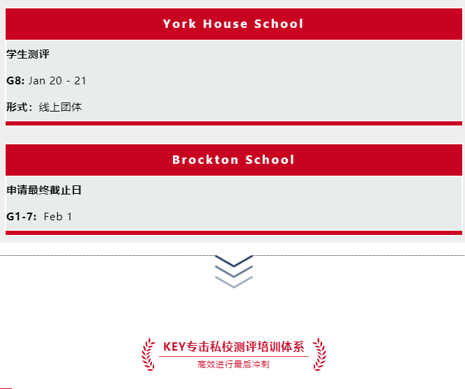 对于中高年级的申请者而言,目前也有私校已经开始发布针对招生年的测评与面试邀请,与低龄申请者不同,部分私校会先进行一次学术测评,考察学生的硬实力,而通过筛选的学生才会收到团体测评的邀请。同时,更多的年级的邀请将在1月后发布。