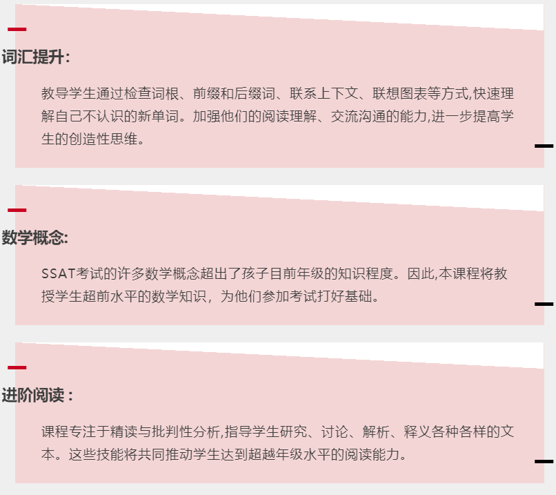替学生打好英语基础能力,确保学生可以理解SSAT课堂中老师所传达的知识要点。