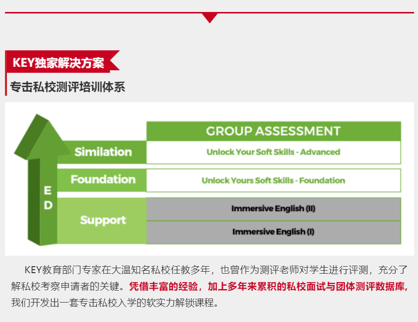 KEY教育部门专家在大温知名私校任教多年,也曾作为测评老师对学生进行评测,充分了解私校考察申请者的关键。凭借丰富的经验,加上多年来累积的私校面试与团体测评数据库, 我们开发出一套专击私校入学的软实力解锁课程。